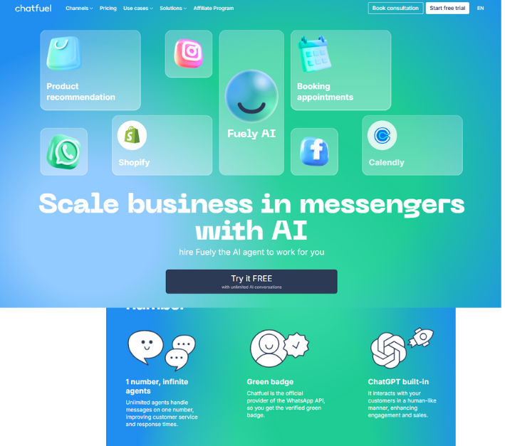 At our core, we specialize in building intelligent, automated solutions that drive business growth. Chatfuel is a perfect illustration of our expertise. We developed a user-friendly, no-code platform that allows businesses to create powerful chatbots for Messenger, WhatsApp, and their websites.